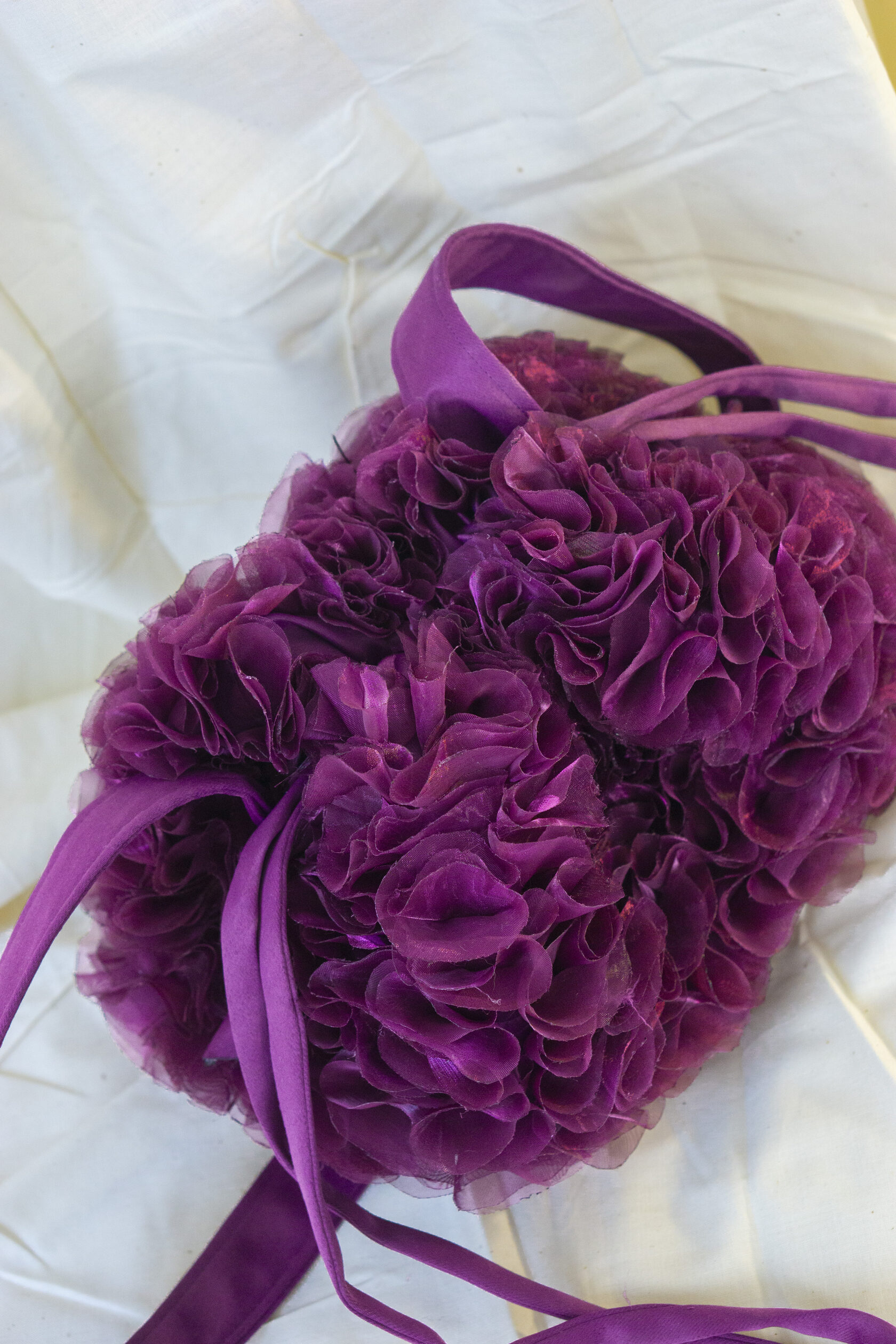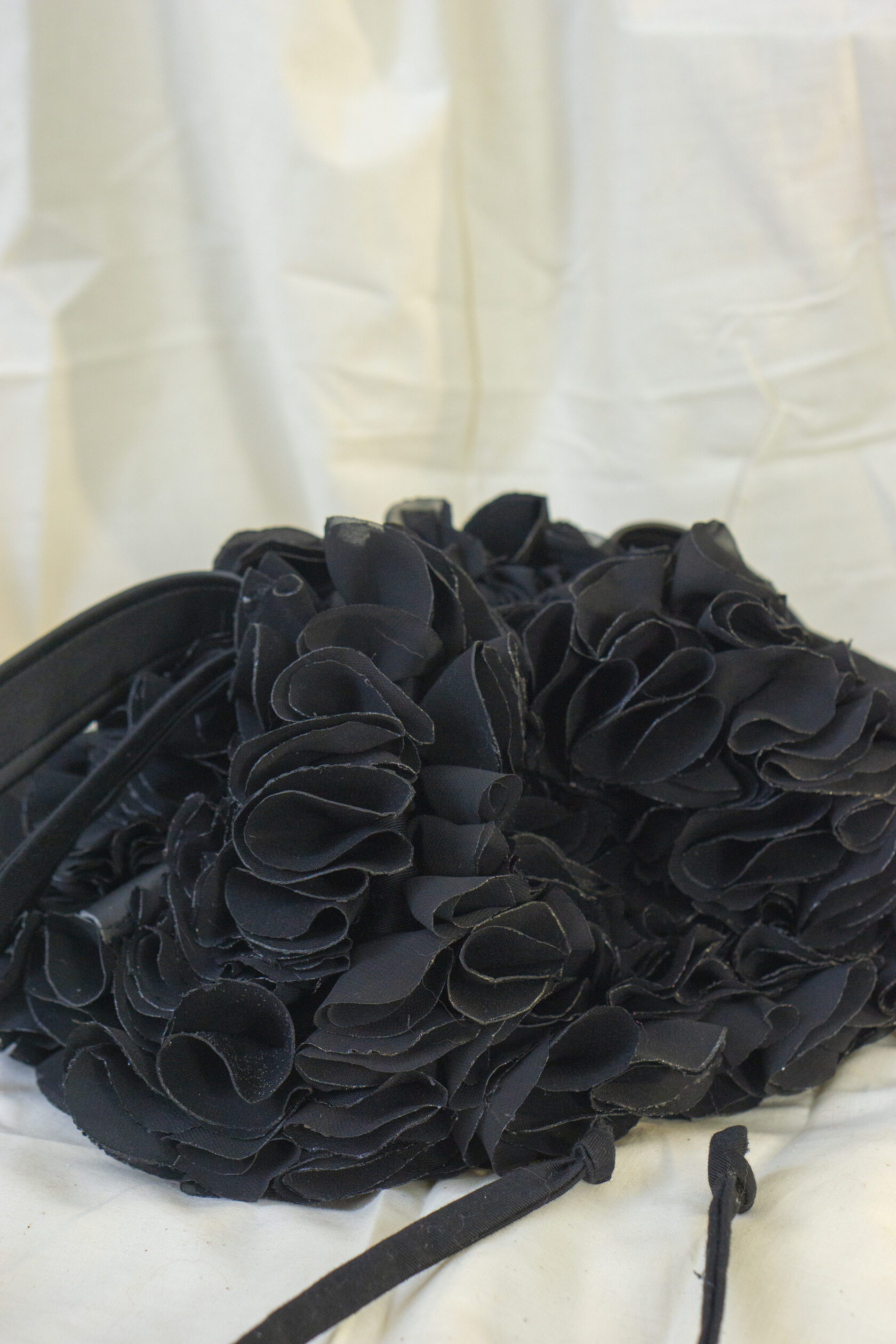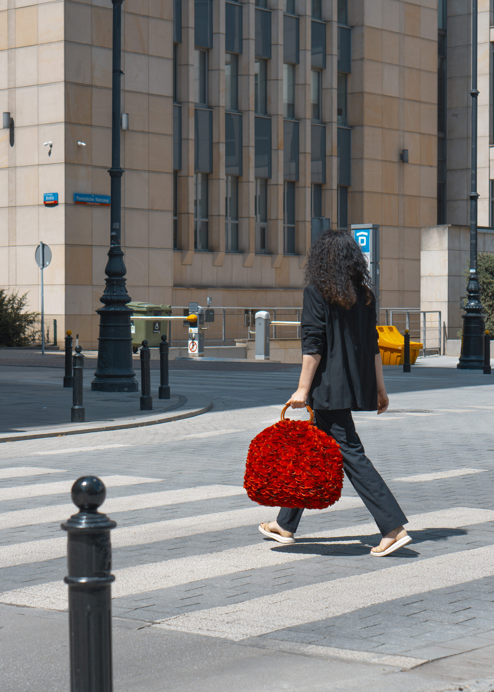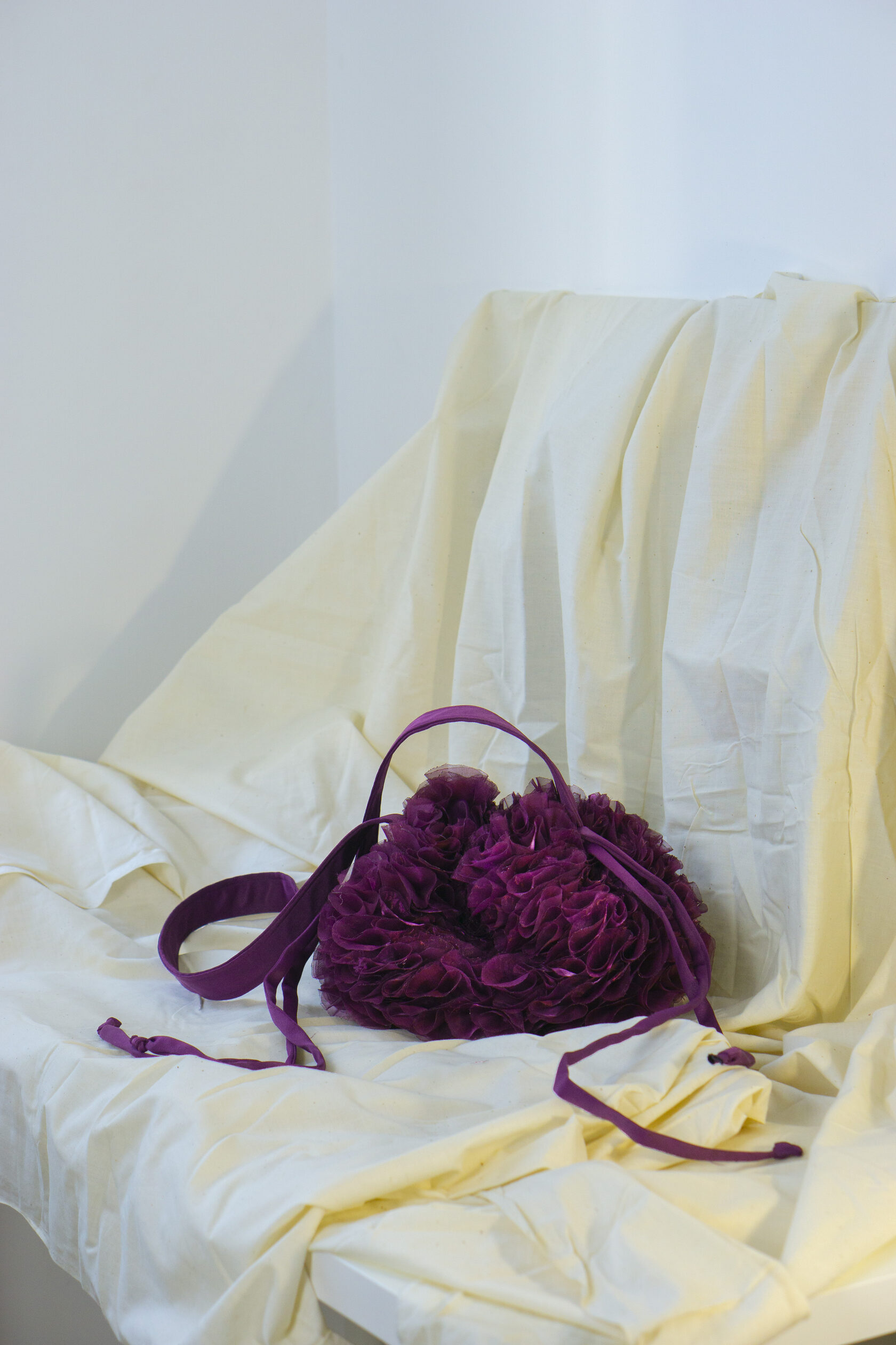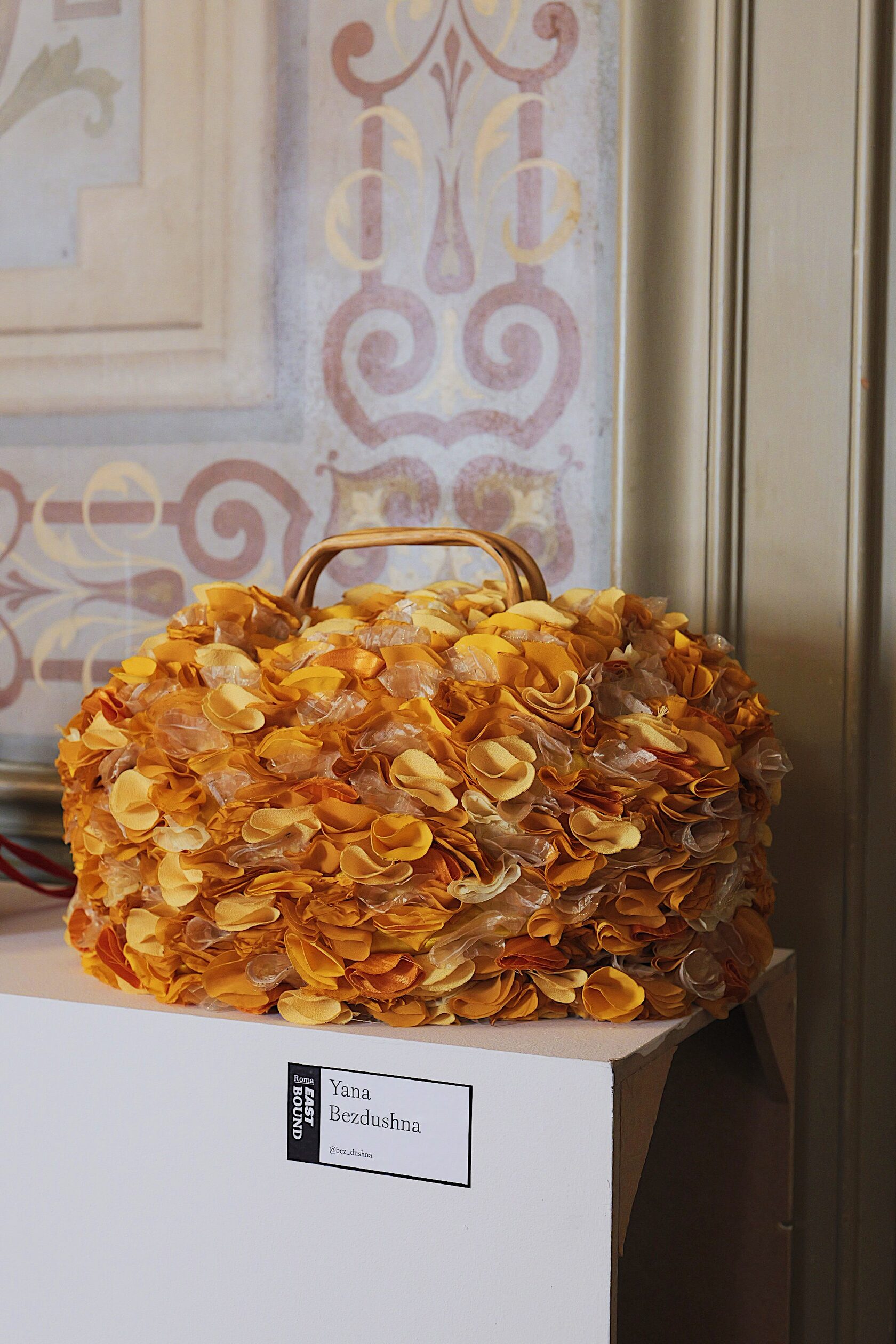 Ręcznie wykonana z upcyklingowanych okrągłych elementów tkaniny, które tworzą unikalną, zabawną i elegancką fakturę. Każdy detal podkreśla kreatywność i świadome podejście do mody.