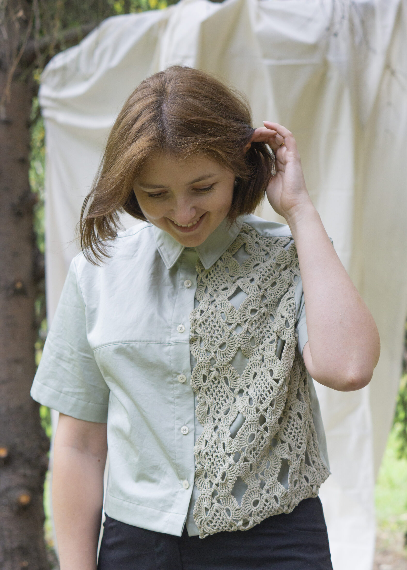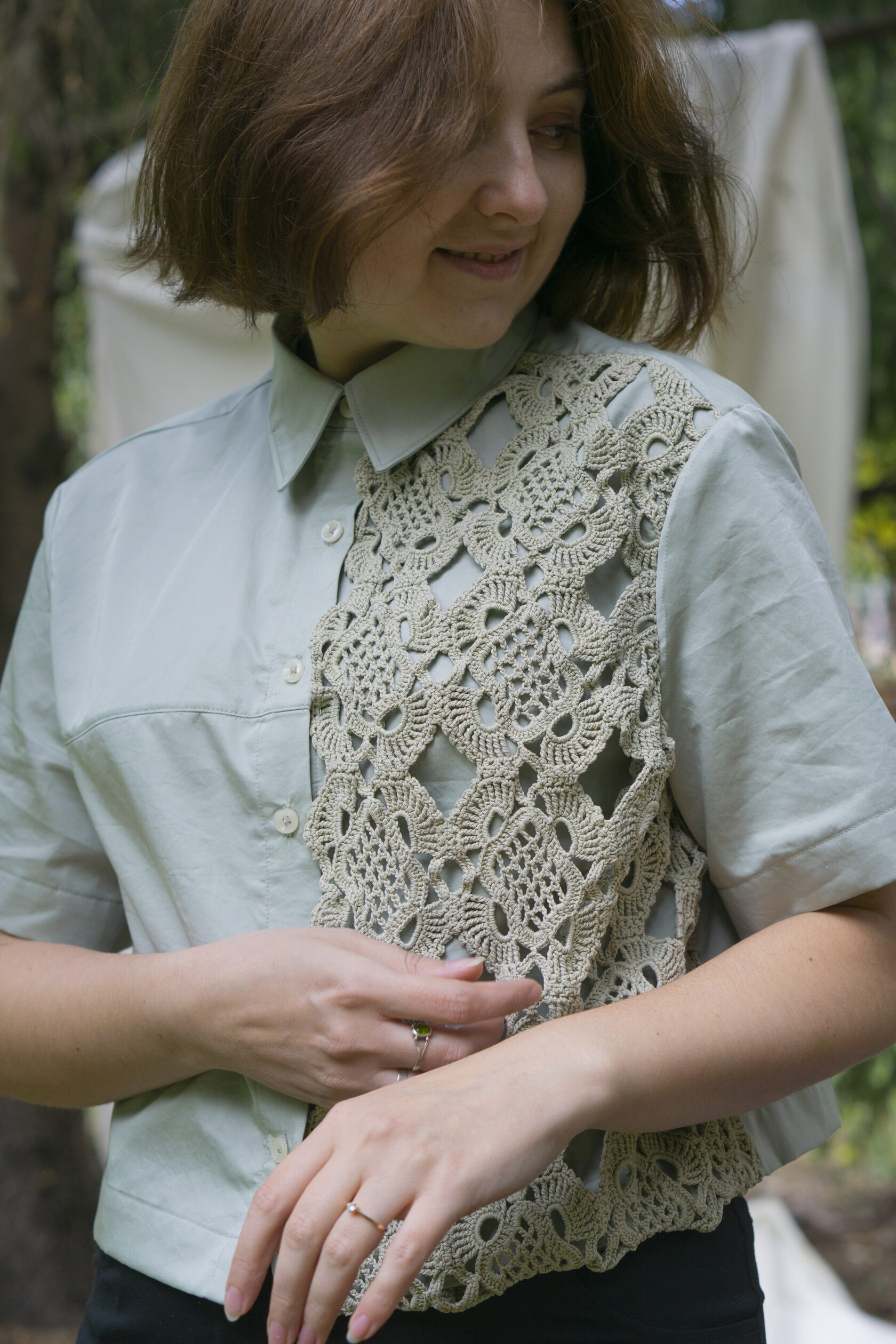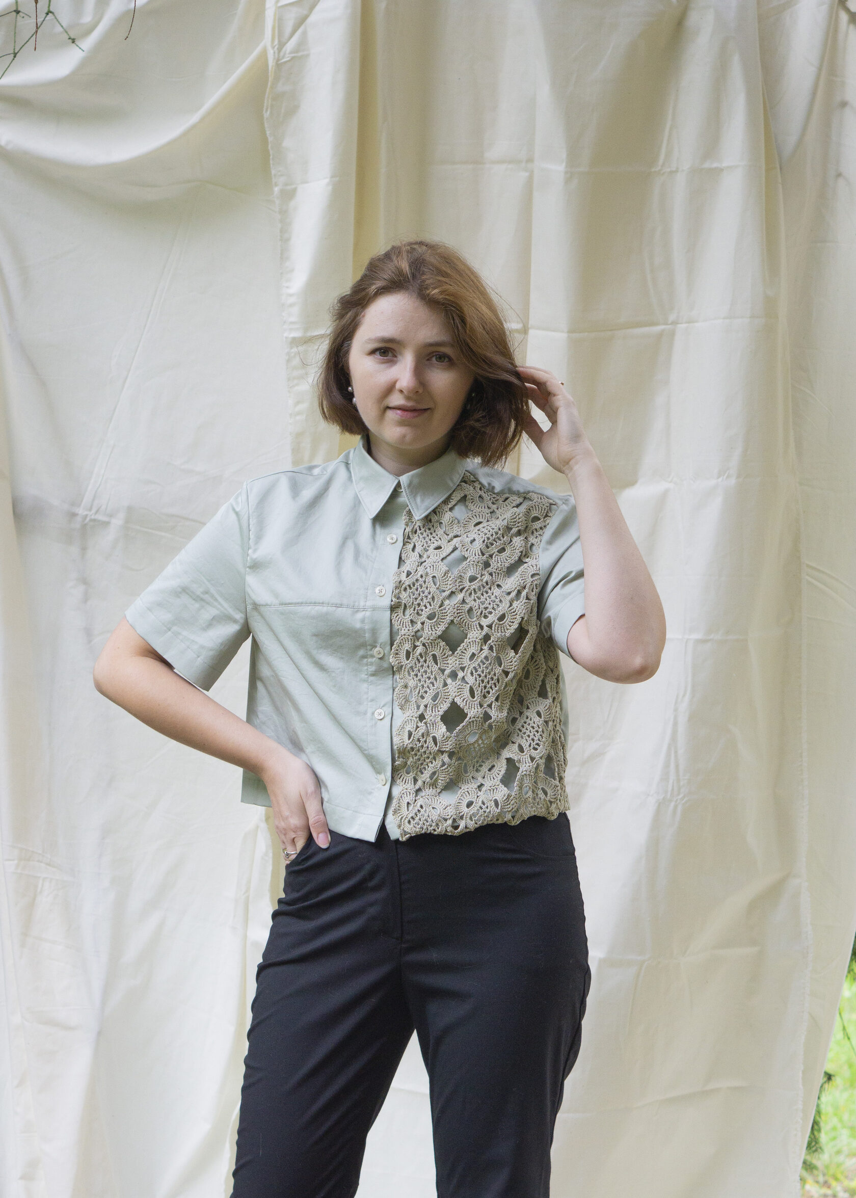 Prezentujemy naszą najnowszą, unikatową koszulę, która powstała w duchu #upcycling. W centralnym punkcie tego projektu znajduje się delikatna, ręcznie robiona serwetka na szydełku. Zamiast leżeć w szufladzie, otrzymała ona drugie życie, stając się romantycznym i niepowtarzalnym detalem.